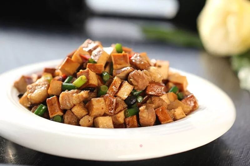 豆豉             小半碗         豆状元香豆干  180g(一袋)小米椒           5个            五花肉          100g          蒜苗             适量           盐、料酒、胡椒粉、生抽、淀粉、油适量