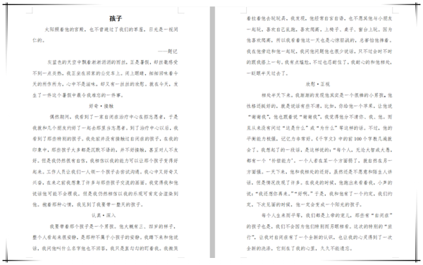 “这次的特别的‘旅行’,让我对自闭症有了一个全新的认识,也让我的心灵得到了一次全新的洗涤,它刻在了我的心里,久久不能遗忘。”扶轮外国语学校的许芊芊在假期到一家自闭症治疗中心当志愿者,并与一名患有自闭症的小男孩成为了朋友。从接触、深入到正视,她发现了男孩身上有很多闪光点,比如记忆力、平衡能力……她在文章中写道“每个人生来而平等,我们都是上帝的宠儿,那些有自闭症的孩子也是,我们不能因为他们特别而另眼相看……”