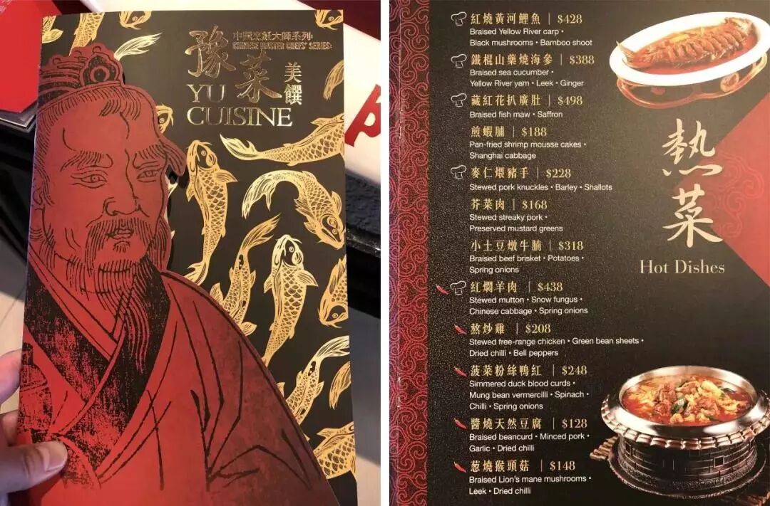 宾客手里拿着的豫菜菜单上,是阿五精心准备的菜肴。红烧黄河鲤鱼、羊肉烩面、酱烧天然豆腐等为代表的河南特色名菜、经典风味小吃都包含其中。