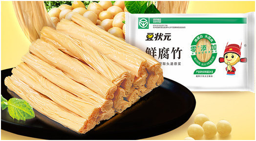 豆状元鲜腐竹的配料表里只有大豆和水,“无添加”“头道原浆”“免浸泡”等特点格外引人注目。其自动化生产线是河南首家鲜腐竹自动化生产线,改变了传统人工生产模式,采用自动化先进工艺,实现生产的自动化、无菌化、数字化和标准化,真正地实现了从传统人工制造到机械化智造的大幅度跨越。2023年,“豆状元鲜腐竹”荣获国家绿色食品认证,成为继豆状元老豆腐、嫩豆腐、老豆花、冻豆腐之后第五款获此殊荣的产品。