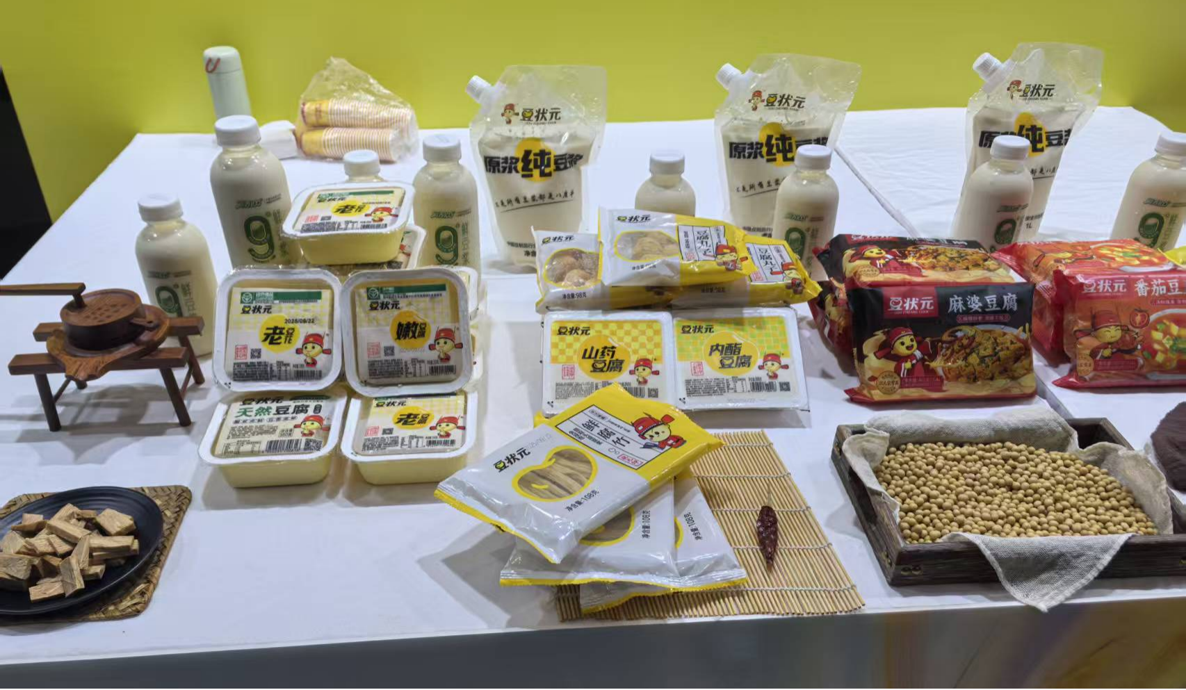在这场以"肉类"为主题的博览会上,一家专注于豆制品的企业——豆状元,成为了全场瞩目的焦点。走进豆状元的展位,一股浓郁的豆香扑面而来,鲜嫩的豆腐、劲道的豆干、香醇的豆浆等数十种豆制品整齐陈列,构成了一道独特的风景线。展位设计融合了传统工艺与现代元素,既展现了豆制品制作的匠心传承,又传递出品牌创新升级的决心。